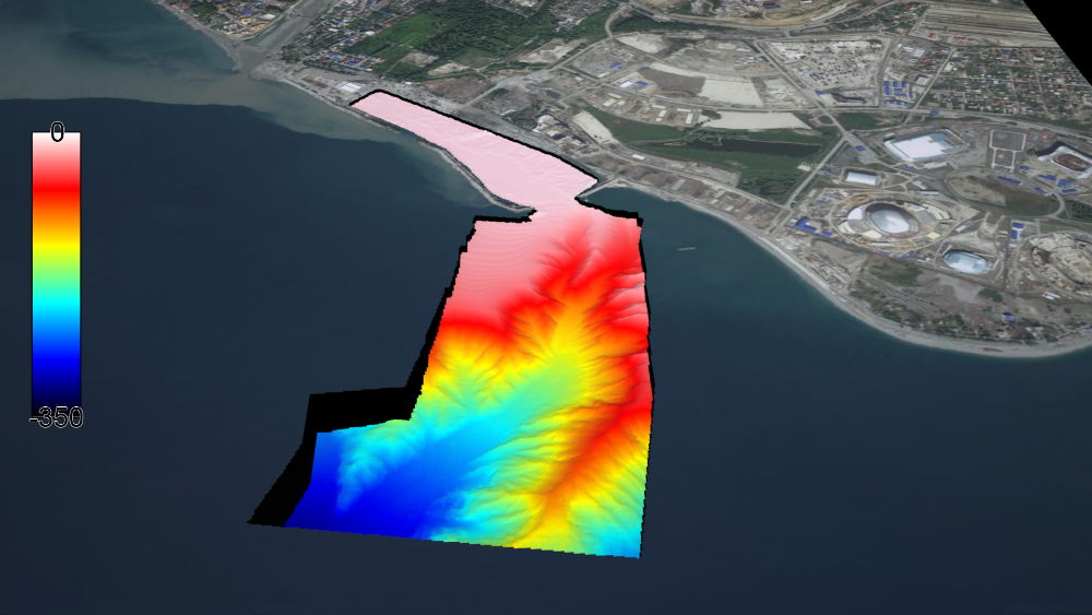 К работе на подходном канале к грузовому району порта Сочи были приурочены испытания нового эхолота Kongsberg 2040с на его предельных глубинах. Данный прибор показал хорошее качество данных как на небольших глубинах так и на глубинах приближающиеся к предельным.